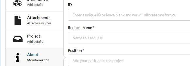 If a user does not want to use the auto generated request ID, they have the option of adding their own to the request on the 'About' section of the DAR: