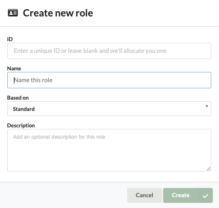 - Based on: the name of an existing role to base the new role's permissions on. These can then be adjusted accordingly.