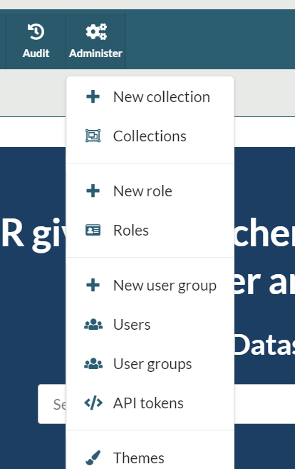 The user groups tab is accessible from the 'Administer' drop down menu:
