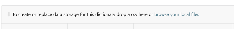 If a data owner wants to replace the data associated with a dictionary they can do this by selecting the desired dictionary and then selecting the replacement data file from their local files, or dragging and dropping it into FAIR: