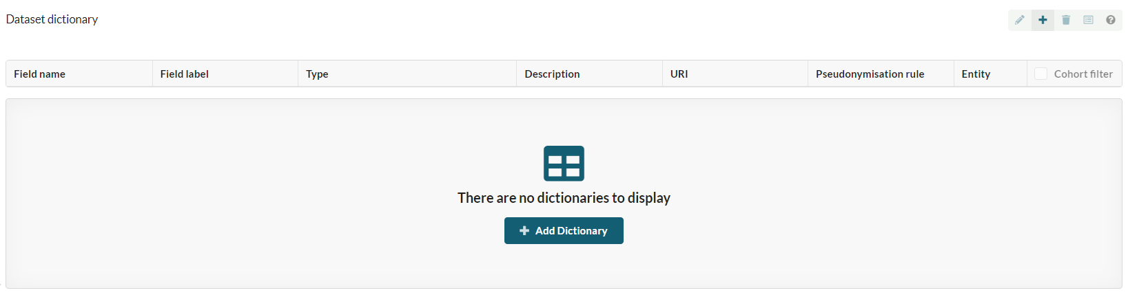 The primary dictionary is displayed by default when users view a dataset, and is selected by default when a user opens cohort builder.