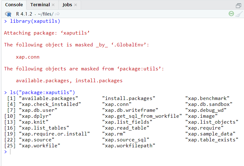 library(xaputils) ls("package:xaputils")