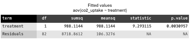 In the example below, we use the ANOVA module to find out whether there is any significant difference between CO2 uptake in plants that received chilled and nonchilled treatment.