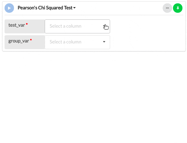 | test_var | Yes | Column Input. Text, Integer, Boolean, Date, DateTime | The first categorical variable from which to calculate the contingency table. |