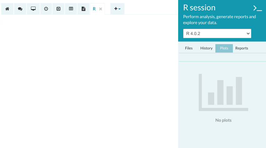 The built-in R console allows users to easily install packages from the CRAN repository. The list of packages available for installation is updated on a weekly basis. It is also possible to install packages not available in CRAN though the process is a bit more complicated as the package first must be downloaded to the user machine and then uploaded to the workspace manually.