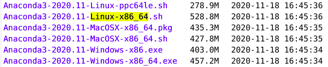 curl -O https://repo.anaconda.com/archive/Anaconda3-2020.11-Linux-x86_64.sh