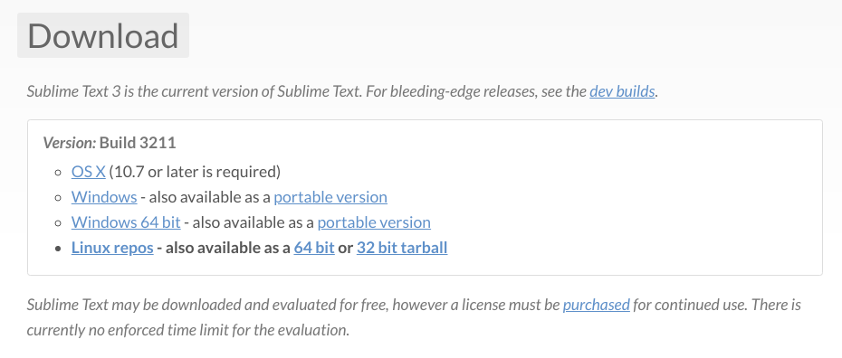 Because Virtual Machine access to the Internet is restricted, you will need to do this step on your own computer. Navigate to the Sublime Text 3 distributions page and download the latest Linux 64 bit distribution.