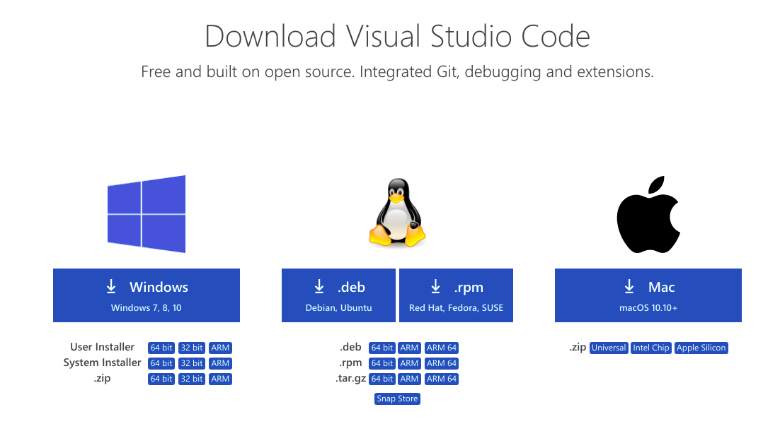 Because Virtual Machine access to the Internet is restricted, you will need to do this step on your own computer. Navigate to the VSCode distributions page and download the latest *.deb 64 bit distribution.