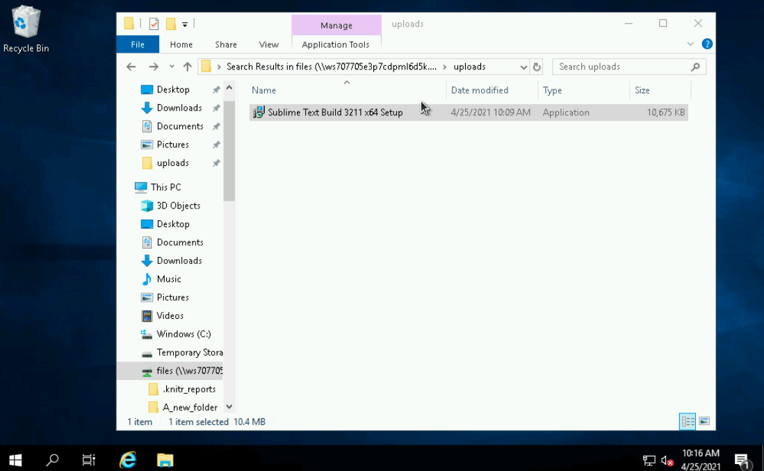 Connect to the Windows Virtual Machine and navigate to the uploads folder. Move the Sublime installer to the desktop.