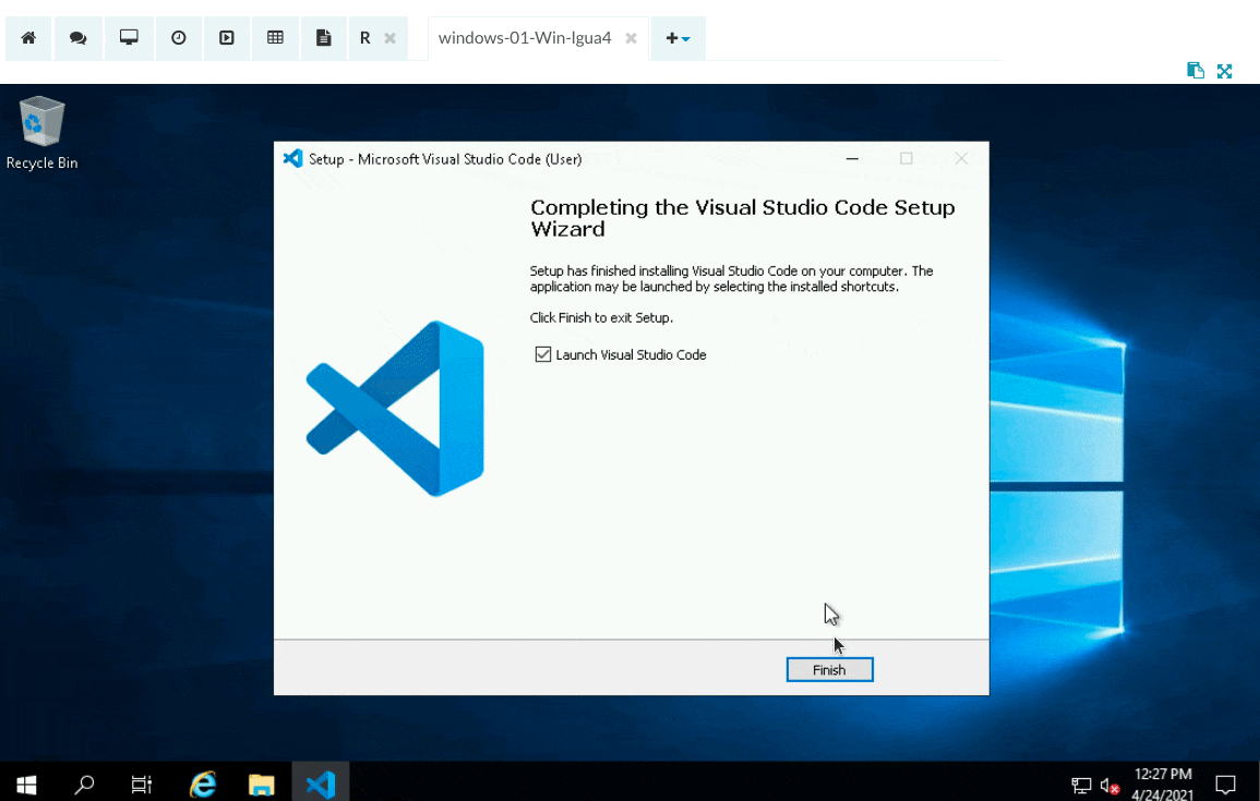 Connect to the Windows Virtual Machine and navigate to the uploads folder. Double click on the executable, and follow the instructions to complete the installation.