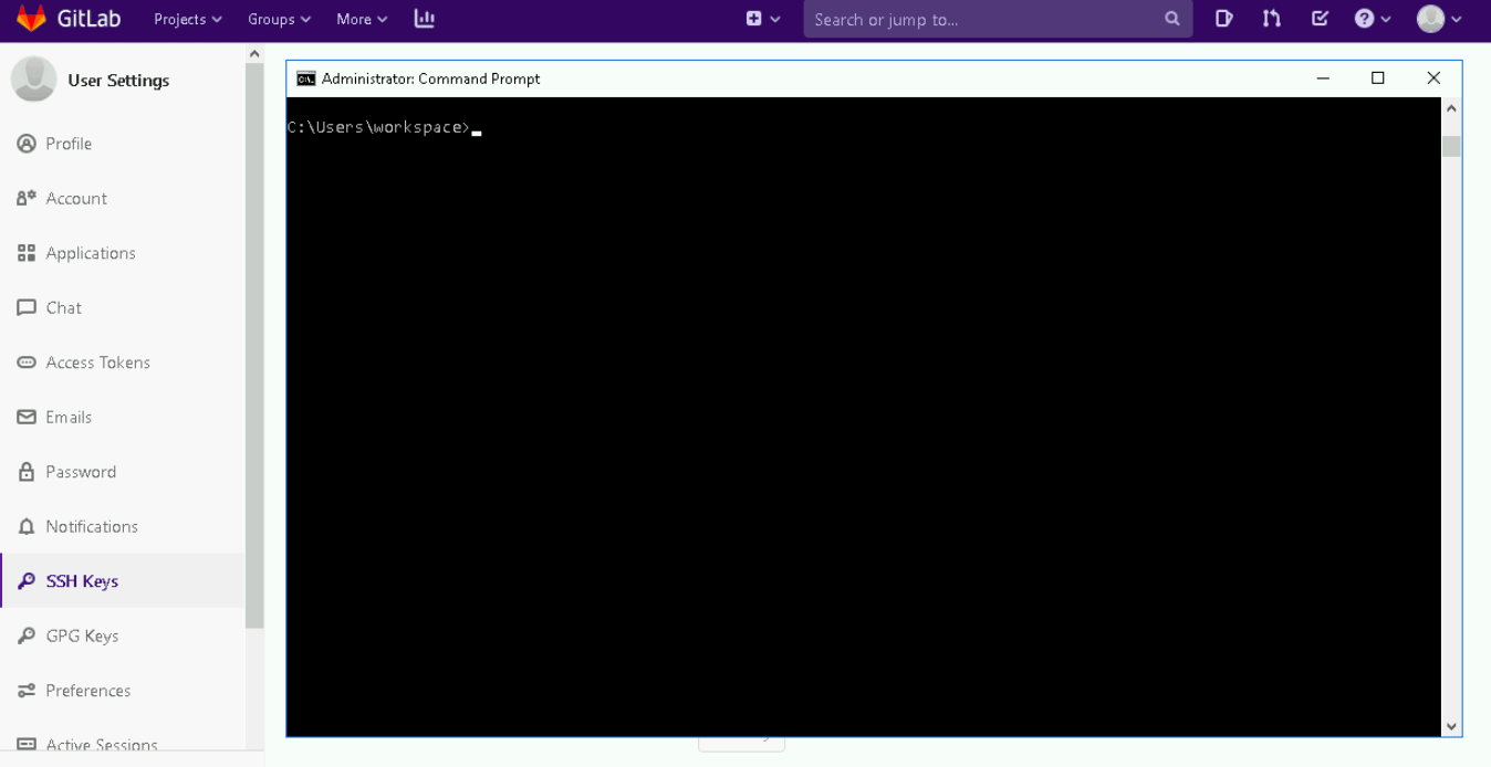 Log in to GitLab with the DRE credentials. Then in the top right corner, select your avatar and click 'Settings'. From the left sidebar, select 'SSH Keys'.