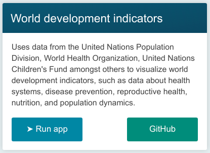 Aridhia's Web Apps can be found on aridhia.shinyWapps.io/menu/. From the homepage, you have the option of running the Web App on the web or visiting their GitHub repositories from where you can download the App source code for running it locally or in a workspace.