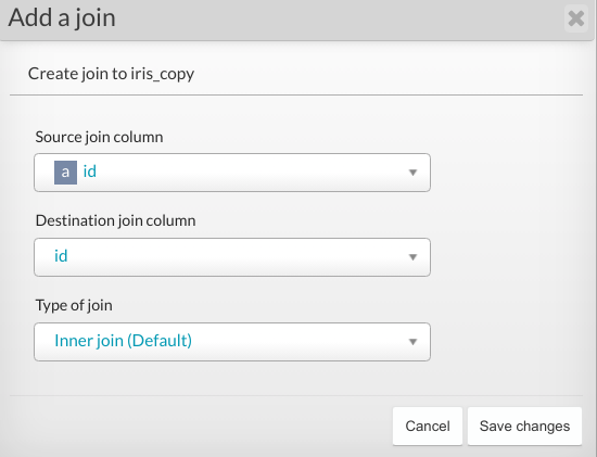 In the next window, select the source and destination join columns and the type of join. You can choose from inner, left, right and outer joins.
