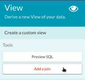 When creating a custom view, you also have the option to join multiple tables. You can do this by pressing the ‘Add a join’ button. This opens a new dialogue box with all the tables available in the workspace.