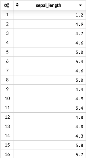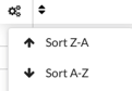 To quickly sort the rows of data by primary key, click on the cog icon at the top left of the table and select ‘A-Z’ to sort from smallest to largest, or ‘Z-A’ to sort from largest to smallest value.