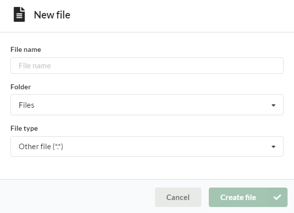 - Click ‘Create file’. This opens a text editor, allowing you to create the required file directly in your workspace.