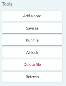 To help you organise the workspace, the files within the workspace are divided into two folders, named Files and Blobs. The Files folder is intended for storing most of your working material like data analysis scripts, PDFs, Office documents and CSV table files. Blobs folder is meant for holding big items like large images, genomics files or larger database files.