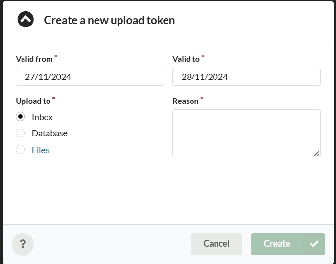 - Valid to: The date the token should expire. The default is set to the maximum value, 30 days.