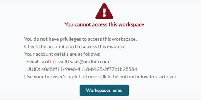 If you have a bookmark to your workspace and use that to access after a restriction has been added, you’ll be presented with the following: