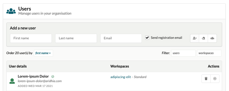 A Tenant Administrator (TA) can invite multiple users to join the Aridhia DRE by uploading a CSV file.