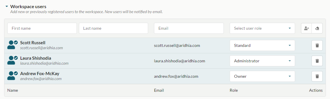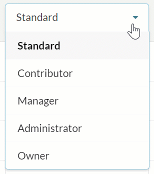- You can use the dropdown next to their name to select their role as either a Workspace Administrator, Standard User, Manager, or a Contributor