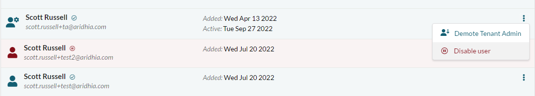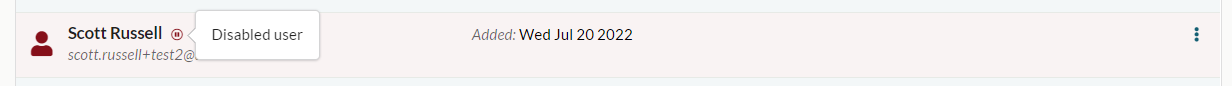 Disabled users are shown in red and have a ‘pause’ icon beside their name to distinguish them from enabled users.