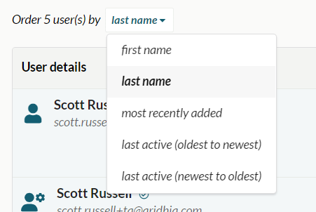 The user list can be ordered using the drop down at the top left of the list.