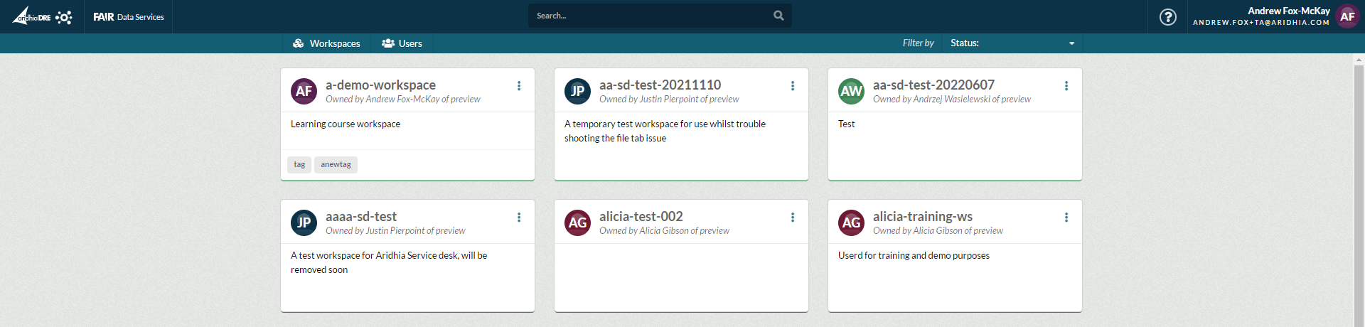 Once you are signed up to Workspaces, contact your local Tenant Administrator or Aridhia Service Desk who can assign you the role of TA. If you don't already have an account on the DRE then follow the sign up process here.